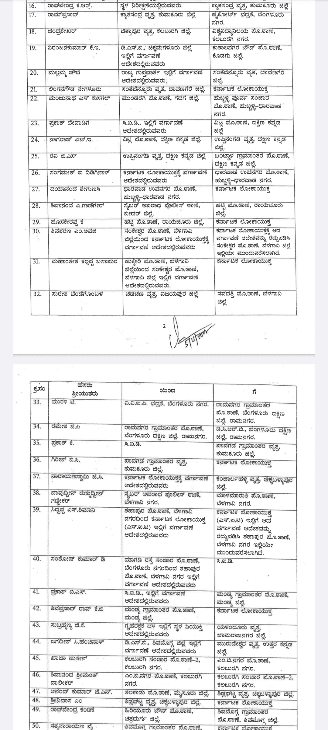 “120” ಇನ್ಸಪೆಕ್ಟರ್‌ಗಳ ವರ್ಗಾವಣೆ- ದಿಡಿಗನಾಳ ಧಾರವಾಡ ಉಪನಗರ, ಗಡ್ಡೇಕರ ಮಾಳಮಾರುತಿ ಠಾಣೆಗೆ…